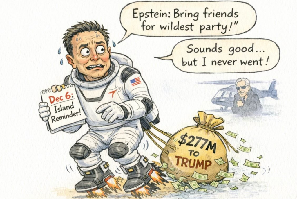 2/7/2026 The strategy of Elon Musk to suck Trump’s cock during the 2024 campaign did not pay off. Everyone knows what a corrupt piece of shit Orange Clown is, so Musk probably thought there would be a high level of quid pro quo going on. He thought spending a quarter billion dollars would be a great ROI—return on investment. Computer and mathematical experts even speculated Musk used Starlink to rig the seven swing states! And what was the result? Musk got a token position in the White House and became a villain over night. There was public outrage after Musk thrashed USAID, subsequently signing a death warrant to millions of starving people around the World. His hideous monstrosity rucks were vandalized in many countries. And for what? Well, the pretense was to slash the budget, but then Orange Clown signed the Big Bloated Bill into law, adding another $4 trillion to the debt in the coming years! Musk doesn’t seem like quite the genius now! And he doesn’t look like he cares about the public! To add insult to injury, his quarter-billion-dollar campaign bribery contribution didn’t pay off! Qatar merely had to donate a jumbo jet in exchange for microchip tech and military secrets! Many, many people know how to properly flatter and bribe Trump, but Musk fell short! The subsidies to EV cars were ended, Scott Bessent socked Elon Musk in the face, then Trump gave Musk a tacky ceremonial key (that he probably got from a gumball machine) as he kicked him to the curb. Trump turned out to be the charlatan Never Trumpers expected him to be, and he’s been a disaster on the international stage. There is guilt by association with Elon Musk. Canada is turning to China for EV vehicles, VW is out-selling Tesla in Europe, and Tesla stock has nosedived. When you’re in the circles of Orange Clown, it’s easy to become a Paranoid Loser because you hear a barrage of his tantrums and tirades about hoaxes and rigged numbers. Elon caught the Trump Mind Virus, and he can’t escape the black hole of his cult. Gallup has been respected by Democrats, Republicans, and independents for decades. Do you think they became corrupt over night and started a witch hunt of Trump? That’s insane! Trump is under water on all issues including the economy and immigration! Musk keeps groveling back to this Retarded Loser! People who otherwise would buy Teslas? They’re staying away. They’re finding other places to go. Oh. Elon Musk, it turns out, is in the Epstein Files …