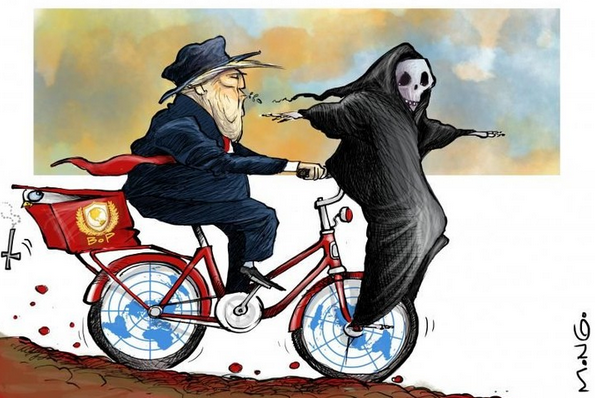 BREAKING: Psycho Trump wonders why he never won a Nobel Peace Prize. He is schizophrenic with qualities Dr Jekyll, Mr Hyde, and of course Pinocchio. Without authorization from Congress, he has ordered military action of yet another oil-rich country. In the coming days, his propaganda will be in overdrive. He will remind the public of the 1979 hostages, and he’ll go on endlessly about Iran’s nuke program which he had claimed was already obliterated. Is World War III on the horizon? Pakistan formally joined Trump’s so-called Board of Peace on January 22, 2026. A month later, Pakistan struck Afghanistan. This is Orwellian. “War is peace. Freedom is slavery. Ignorance is strength.” At this point, Trump is a poseur Emmanuel Goldstein …