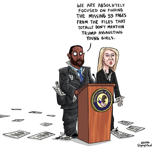 2/27/2026 Bill Clinton testified about the Trump-Epstein Files behind closed doors and did not plead the fifth. This whole process is incomplete, and is a circus and sham until Jeffrey Epstein’s best friend, Orange Pinocchio, is compelled to testify …