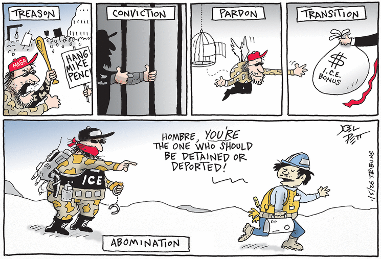 1/16/2026 BTC and Glenn Kirschner discuss the Insurrection Act. As always, Pinocchio Trump lied about the history of its usage. Nonetheless, casusual observers are seeing more and more that Fate decided to put an Orange Psycho into our American White House …