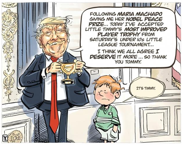 @0:26 “I don’t know what role fact checks play in this ludicrous universe.” This discussion with James O’Brien runs through the so-called 8 wars Orange Clown claims he ended. Three of them involved Israel, and we all know that no war involving Israel is ever truly over. There is never permanent peace there. The killing never ended. They set up some peace conference on the eve of the announcement of the Nobel Peace Prize winner so Trump could feel like he accomplished anything, but the mass killing promptly continued. Also, Trump can’t say “Azerbaijan” correctly, and he claims he solved that conflict with Armenia… which he keeps confusing with Albania. The fact is that Azerbaijan defeated Armenia in a border dispute. The fighting stopped for that reason. Something similar happened between Thailand and Cambodia. Keep in mind, FIFA presented a peace prize to Orange Clown, then he promptly violated international law by kidnapping the president of Venezuela, presumably to stop fentanyl deaths in America all the while the World knew it was about oil the whole time. Tim Apple gave Trump a lavish gift. War criminal, Bibi Netanyahu nominated Trump for the Nobel Peace Prize. Vladimir Putin shits on Trump on Russian state TV, and he did not help end the Ukraine War on Trump’s Day One. Trump likes shiny prizes, and he likes nominations. He said Michigan gave him a Man of the Year award, which was a lie. The lie was so pervasive, though, that some obscure group created a Man of the Decade award and gave it to him. He recently coerced Maria Cornia Machado to give him her physical medal. That’s what makes Trump tick! Years aho, he even created a fake Time magazine Man of the Year award and hung large versions of it on his country club walls. When Armenia was defeated in their bordee dispute, and when Cambodia was defeated in theirs, they knew that Trump is moved by flattery. They could say he had anything to do wirh ending the fighting and they would receive financial and military air from the United States. Nobody believes he had anything to do with ending those conflicts, though! The weaker countries stroked his ego for money and support! The same with India and Pakistan! They had a border conflict and India said Trump had zero to do wirh it ending. These border flare ups happen, and some of these conflicts have gone on for decades. In the case of Israel, they’ve gone on for centuries. There are lulls in the fighting. Just because you’re standing around when a lull happens doesn’t mean you broketed peace! It’s like being inside a rowdy bar, watching two men fight each other, one guy knocks the other out, the loser gets dragged out by his friends, then you claim you stopped the fight simply by witnessing it! Trump is at that Forrest Gump level of intelligence, though. He’s almost smart enough to go to school with the regular kids, but he’s more on the retarded side. If Trump didn’t have a weslthy daddy, he’d be going to school on the short bus. Mark Twain said that if you have ignorance and confidence, success is sure to follow. In 2016, Donald Trump had a shit load of ignorance, and he had a shit load of confidence. It landed him in the White House. Nobody can tell him he’s wrong because he has that “retard element” going for him! They couldn’t tell him he lost the 2020 election, and today they can’t tell him his poll numbers are in the shitter. They can’t tell him he had nothing to do wirh “ending” these so-called conflicts! They can’t tell him that drug prices can’t be reduced ny 1300 percent! Recently, he acknowledged that his calculations were insane then promptly said that Democrats do math different! What a retarded weirdo! And here’s further evidence that he’s a mathematical imbecile, if we delve into his mountain of lies and propaganda. He has already claimed he ended eight wars, then he acknowledged that one of them kicked up again. Was it the Thailand/ Cambodia one? Was it the Egypt/ Ethiopia one? It’s never completely clear because there’s never any lasting peace! Here’s where the imbecile element of his logic kicks in. If you had presumably ended eight wars then on restarts, that means the new number is less than eight! In Trump’s fucked up brain, he increases the number to eight and a quarter! Retard! Right? The whole World is watching this happen, and we’re all thinking the same thing! “This dude has a screw loose! The lights are on, but nobody’s home! He’s a few French fries short of a Happy Meal! There’s only one oar in the water! This elevator sadly doesn’t go all the way to the top floor…”