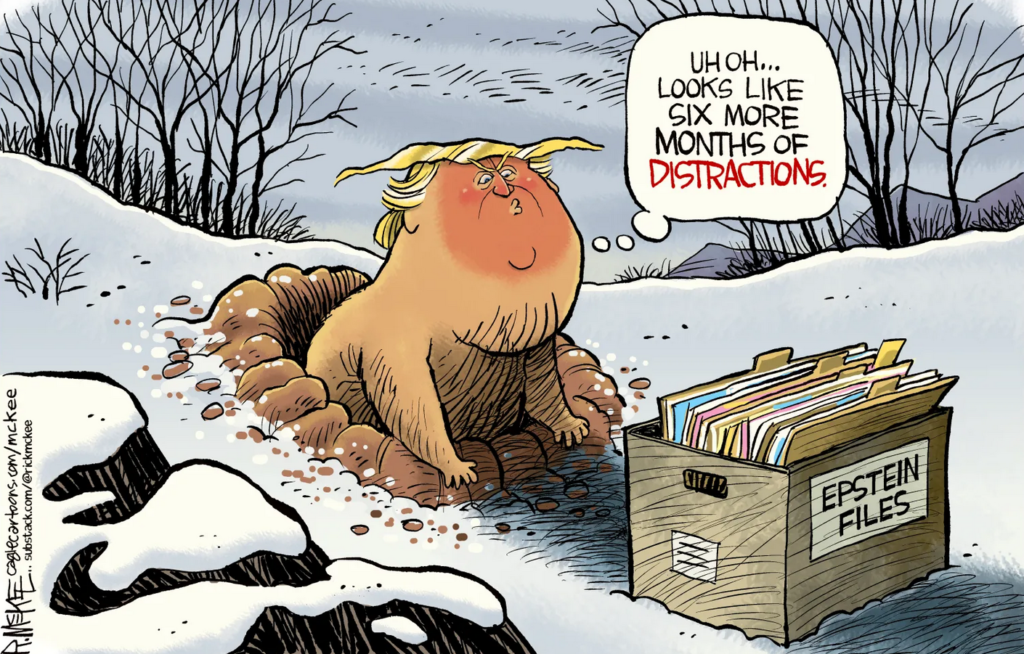 1/30/2026 There was a December 19th Congressional deadline for the DOJ to release the Epstein Files. They didn’t want to do it because Jeffrey Epstein’s best friend was Donald Trump, and the Orange Clown’s name was all over the Files! To create a distraction, Trump’s Goons kidnapped Nicola Maduro from Venezuela and pirated their oil in the process! Well? The PR wasn’t any good so as a distraction, Orange Clown decided to invade Greenland! He went to Davos, Switzerland and was sent packing with his tail between his legs! Bad PR again! So he needed another distraction! This time, he ordered 3000 ICE agents to invade Minneapolis where they murdered two Americans, Renee Good and Alex Pretti! Of all the horrible PR incidents, this was the worst! It leads us to Square One, the Epstein Files! To distract from the ICE murders, horrid economy, bad Melania movie, Trump passing out during cabinet meetings, and the impending government shutdown, the DOJ decided to release 3,000,000 more Epstein Files! Is anybody following this? We haven’t even touched on Orange Clown’s plans to invade Philadelphia, Mexico, Colombia, Mexico, and Cuba …