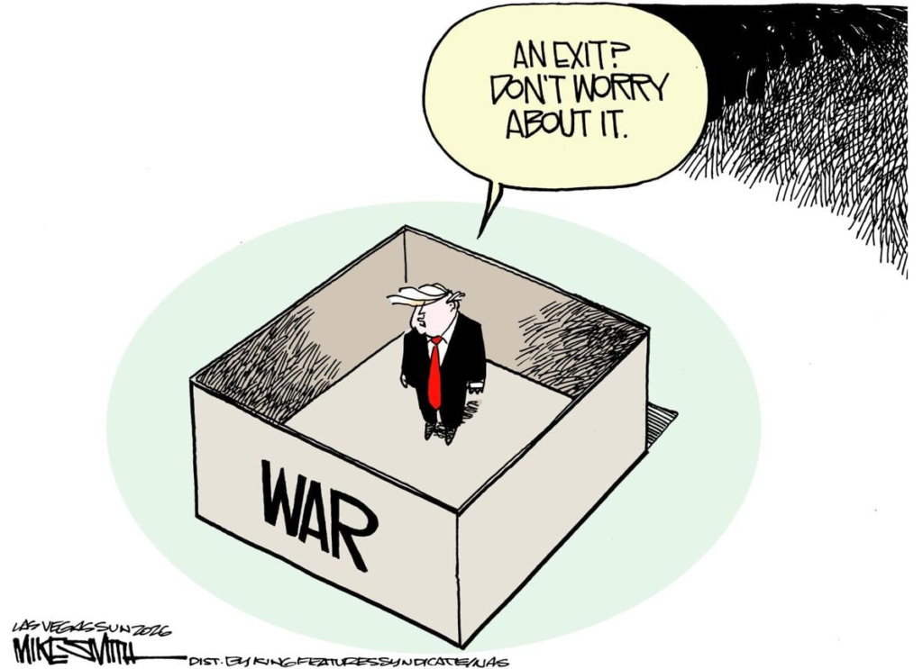 3/7/2026 In a decent show of formality, Rep Melanie Stansbury talks about how Trump’s illegal war violates the War Powers Act and has no defined objective. She says that Trump needs to come before Congress to explain himself, make his case, and receive authorization for boots on the ground. The World needs to understand that Donald Trump has become a cartoon villain. The Joker (Trump) has kidnapped the Maharajah of Nimpah in order to get a large ransom, or he has heisted a bunch of jewels from the Gotham Museum. Sansubury demanding that Trump do the legal, proper thing by making a case for war in front of Congress is no different than Commissioner Gordon demanding that the Joker appear before Gotham City Hall to explain his crime sprees. Ir’s just not going to happen. It’s not that the Constitution is isn’t good. It’s that Donald Trump isn’t good. Nobody wants to believe he became a cartoon villain, but there’s no other way to look at this …