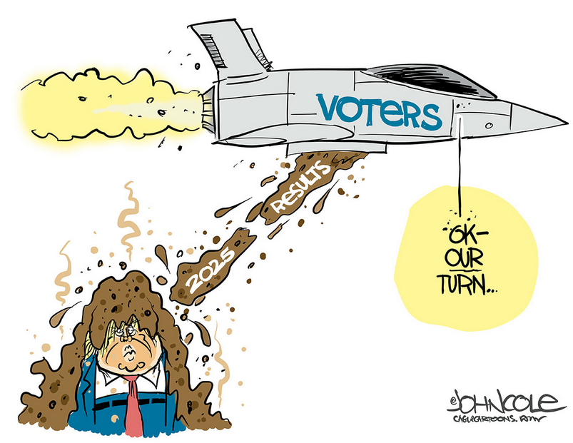 11/8/2025 @1:21 “Trump Really was Was on the Ballot.” – Wall Street Journal. @8:13 “Energy was so expensive, and now I have it down to half what it was.” – Orange Clown. You can be out of touch and live in a delusional world, and so long as you stay in your four walls, people will leave you alone. You can be a liar and propagandist in the United States of America, and it’s actually legal. You can repeat falsehoods over, and over, and over again, hoping your persistence will set in the minds of imbeciles. At some point, the masses take charge of their own lives. If you’re a politician doing these things, you get voted out of office. Donald Trump has never taken responsibility for anything. Even his loss in the 2020 election, he blamed on his vice president. His economic policies are crap, and ordinary Americans know it. Once again, the Orange Clown deflected and posted that Republicans lost because he wasn’t on the ballot. Rupert Murdoch runs FoxNews and the Wall Street Journal. The WSJ contradicted Trump’s claim and said that he indeed was on the ballot. Bret Baier from FoxNews sat down with the Orange Clown, and gave him a typical softball interview, but it’s clear Trump has no clue what’s going on and he doesn’t know what he’s talking about. Somebody shops for Trump. He doesn’t go into grocery stores like regular people. He doesn’t gas up any cars at the pump. He doesn’t live on any tight budget. Voters showed up in droves this past Tuesday, and they regained some control of their lives. The WSJ said Trump was on the ballot because they accurately observed the electorate. If Trump remains this far out of touch (and he will), the Republicans will take a mammoth hit in the 2026 midterm elections …