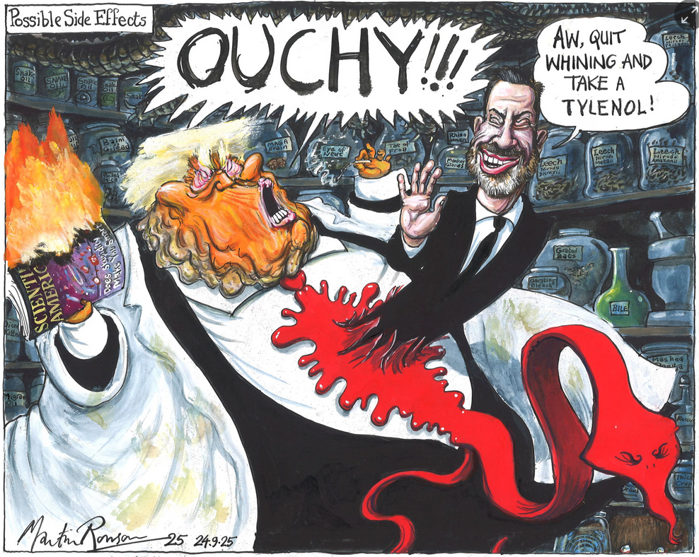10/3/2025 Trump has been MIA since his low-energy psycho speech to military leaders. Perhaps the Deep State is as real as he claims it is, and they’re hiding him from the public for tasking generals with invading American cities? Or maybe he had another stroke? Nobody knows right now …
