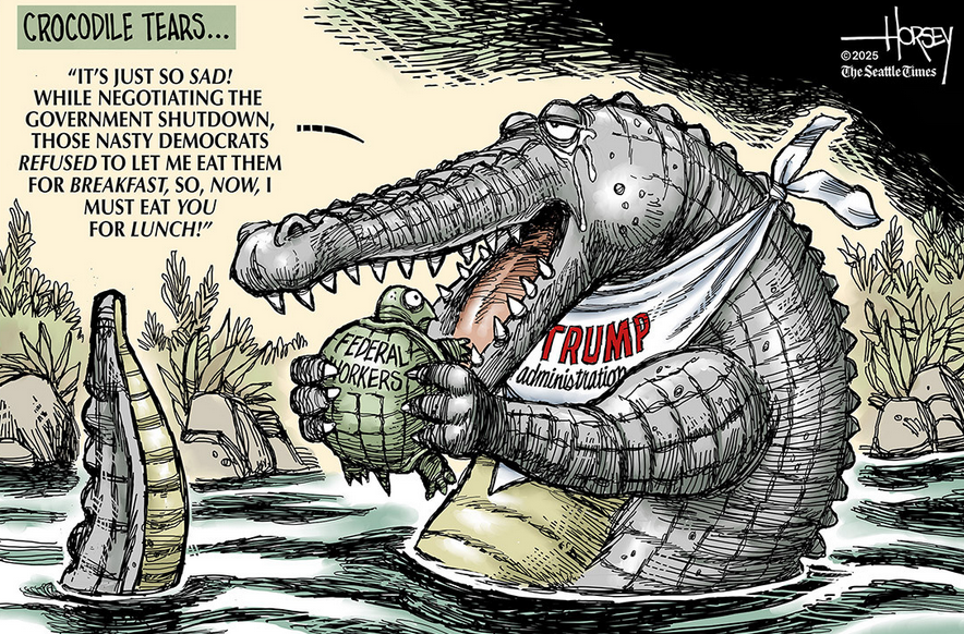10/1/2025 Putin’s Bitch (the Fat Ass Orange Clown) is causing a government shutdown because he’d rather fondle plutocrats and oligarchs than help ordinary American people …