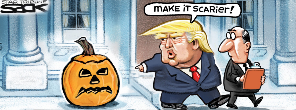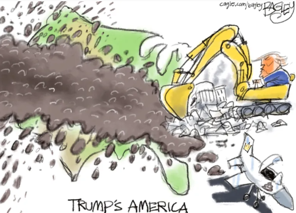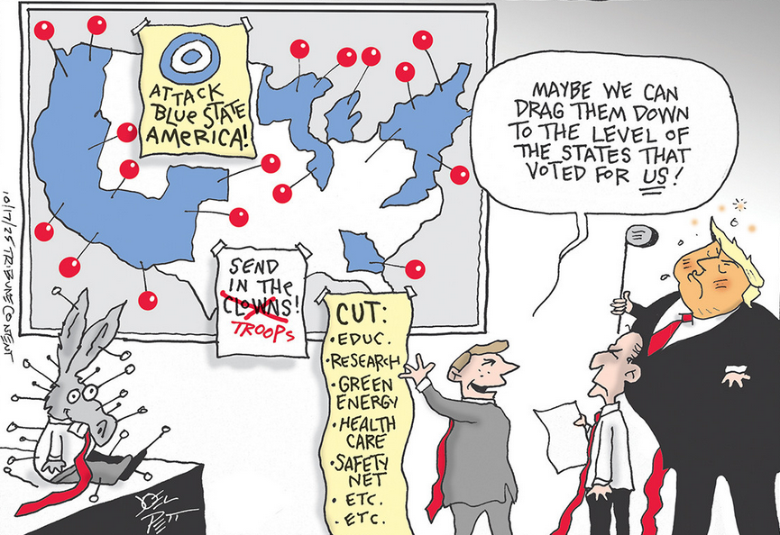10/30/2025 Let’s make it clear that Donald Trump is complicit in Bibi Netanyahu’s genocide of Gazans. Never Trump Blog likes to keep things as light as possible, and we utilize many political cartoons. When a ceasefire between Israel and Palestinians was announced on October 10th, we didn’t need to search for current political cartoons, although we did. Why? The themes are the same. When peace is declared in the Mideast, it never lasts. We were very, very skeptical, as most ordinary people were. We don’t only scan left-leaning and centrists cartoons to make our points clear. We check out right-wing publications, and holy crap! They were created by naïve people, or pure propagandists! There was a consistent sentiment that the widespread skepticism was due to jealousy of Donald Trump, of all things! That was psychotic, but right-wingers like Jesse Watters don’t exist to provide accurate and reliable journalism! They exist to press the buttons of the libs! Kayleigh McEnany admitted this a while back when she said Trump deserved 34 Nobel Peace Prizes! What a crazy joke! Orange Clown is bombing innocent fishermen in the Caribbean without the consent of Congress! Rand Paul believes this is illegal! It is a war crime, and Rand Paul is Republican! The Clown Car on the political right keeps pretending their only criticism comes from Radical Left Lunatics, but it’s really coming from all directions! The ceasefire was never a real thing, and Palestinians continued to be killed. The latest slaughter involved more than 100 people, and 46 of them were children! If Trump was as tough on Netanyahu as he was on Portland, the ceasefire would stick… you would think. Marjorie Taylor Green is not a Radical Left Lunatic, and she shared her thoughts on Twitter/ X about the 46 murdered children. @11:21 “Are these not war crimes?” Yes, MTG, they are …