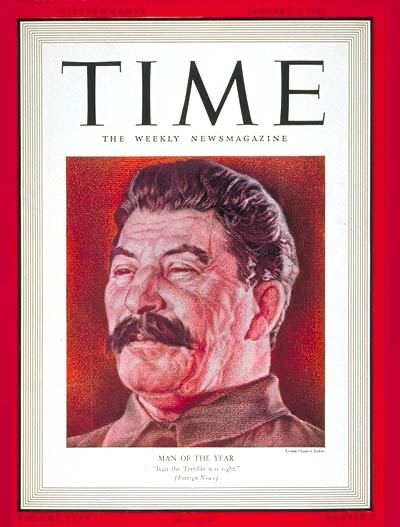 1939 Man of the Year, Joseph Stalin. He was featured on Time’s covers eleven times. Time’s Man of the Year became a euphemism for Future Mass Killer …