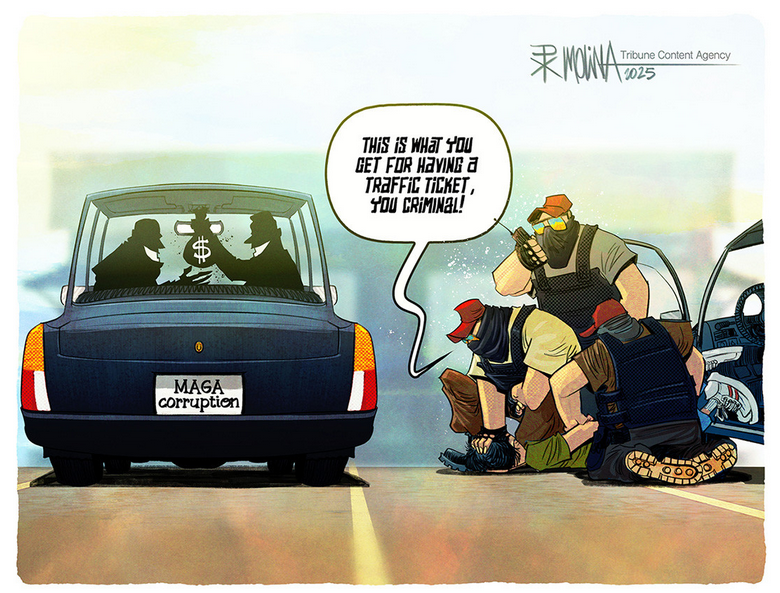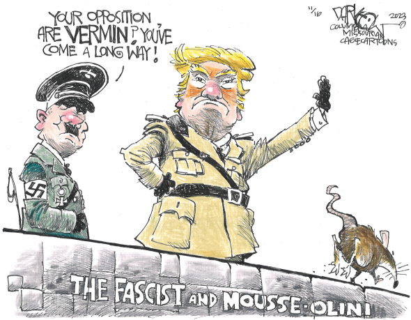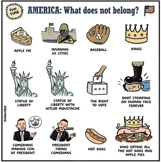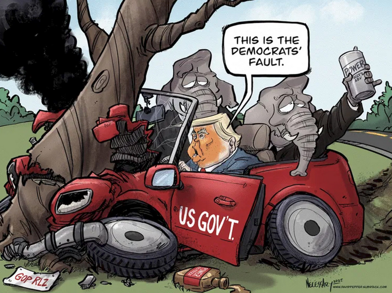 10/14/2025 In Trump’s mind, MAGA means Make America Germany Again, and we’re talking about 1939 Germany. If there’s a poll which shows the Orange Clown with low approval ratings, he claims it is rigged, even if it comes from his buddies at Fox News. If there is a successful protest against him, or if there is a huge rally by a political opponent, he claims the participants are paid by Democrats or Soros. The Declaration of Independence listed 27 specific grievances American colonists had with King George III. The First Amendment of the Constitution allows the People the right to peaceably assemble, and to petition the Government for a redress of grievances. King George III of England was known to be a crazy person, and the Orange Clown in the White House today has his own significant abnormalities and deficiencies. He is a sociopathic narcissist with a brittle ego. In short, he is crazy. The common American believes his low poll numbers aren’t rigged, but this idea is not able to penetrate itself into Trump’s mind. The defense mechanism of denial kicks in. The last No Kings Day had more than 5 million protesters take to the streets. It’s not difficult to do the math. Are the Democrats and Soros really paying these people? If everybody got paid $1, that would cost $5 million. Let’s up it to something reasonable for a protester to think it’s worth it. Let’s say eveeybody got paid $100. That would cost $500 million! Does that even sound feasible? That’s how much presidential elections used to cost! No, Trump is a crazy person, and so are the goons around him! Only a retarded person would reject the low poll numbers, and the protesters in the streets and pretend it’s all paid for and rigged! The American People have a legitimate redress of grievances, and their peaceful mass assembly is their vehicle to express it to the government! Trump has a mental deficiency which will not allow him to internalize these grienances, the same way King George III couldn’t understand a Revolution was forthcoming. Trump’s Yes Men understand, though. They are not real Americans because they support fascist ways over American ways. They want to squash peaceful assembly. They want to shit on the redress of grievances! They would rather be seen as Nazis instead of Americans when history books are read in future classrooms …