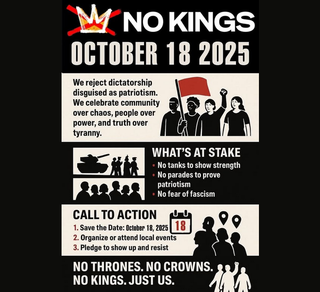 10/13/2025 The first No Kings protest this past June was a massive success. There will be another this coming Saturday. What will it be about? Leah Greenberg, one of the organizers, talks about it here …